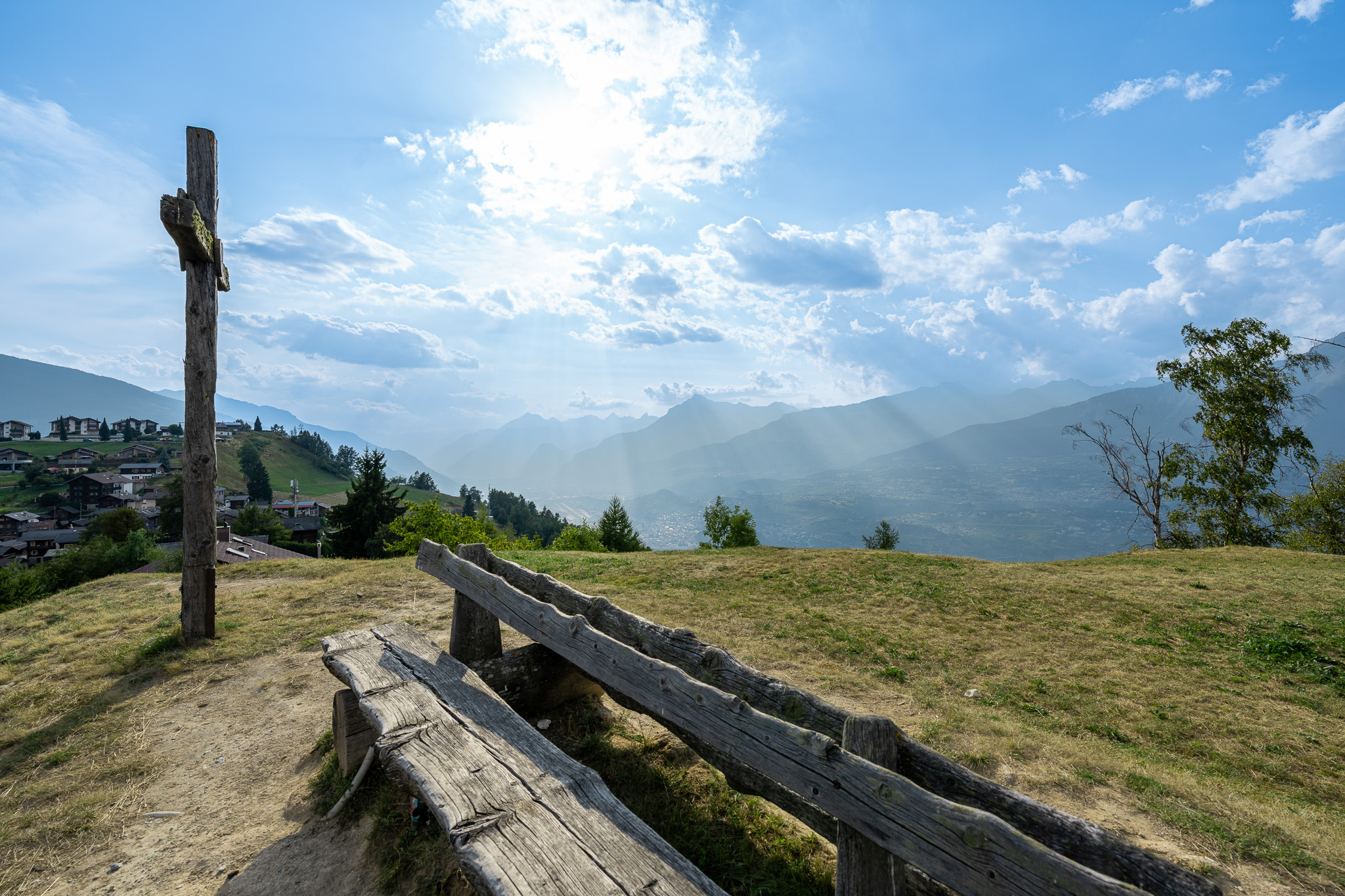 Nax liegt auf einem sonnigen Hochplateau im Val d’Hérens, auf rund 1’300 m ü. M., und wird nicht ohne Grund das «Balkondorf des Wallis» genannt: Die spektakuläre Aussicht reicht weit über das Rhonetal bis zu den Walliser Alpen – ein Panorama, das jeden Tag aufs Neue begeistert.