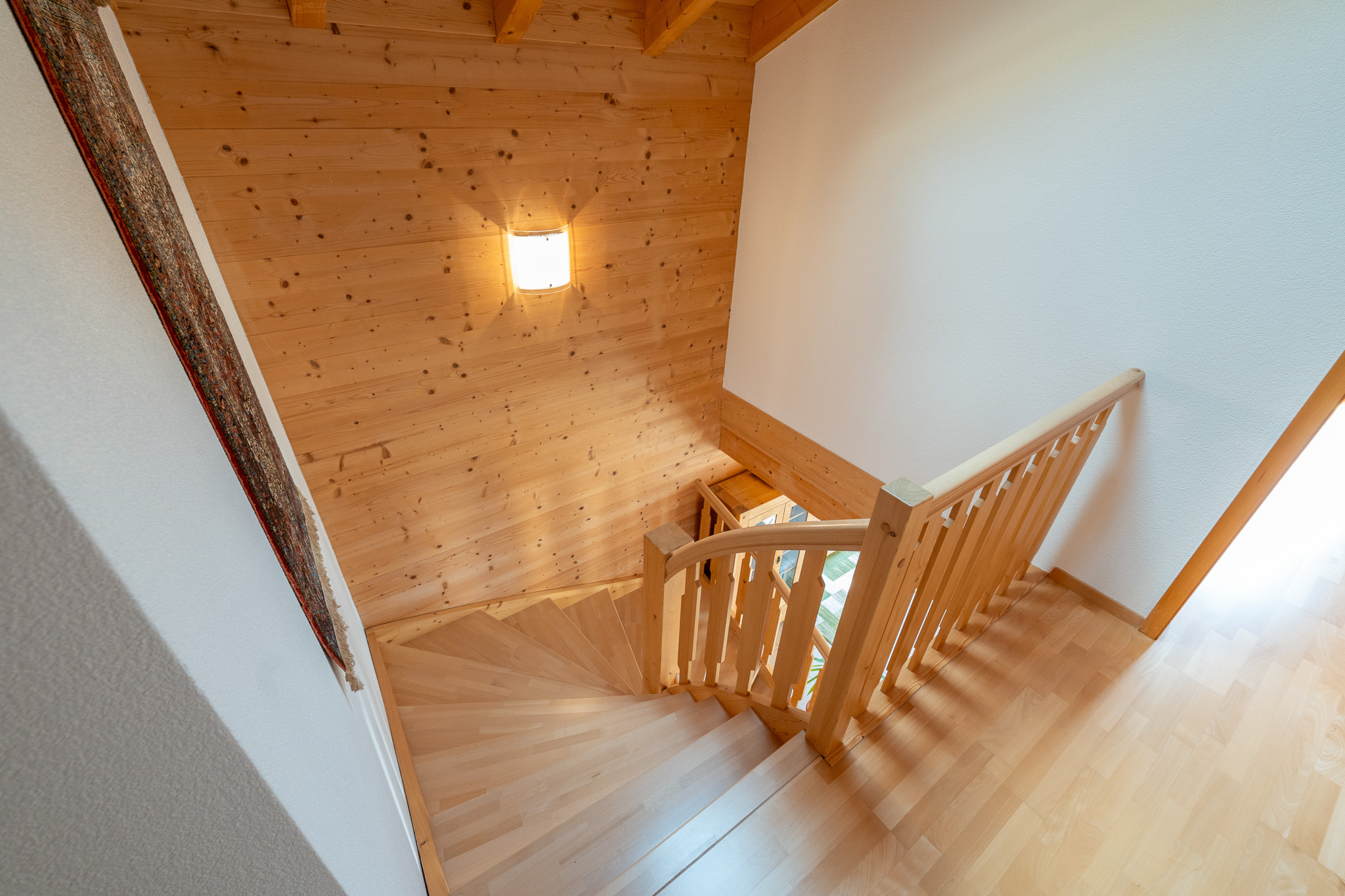 Das Dachgeschoss bietet drei Schlafzimmer, ein Bad mit Wanne und Dusche sowie einen Balkon mit Alpenblick. Besondere Highlights: private Doppelgarage mit Zugangstunnel, Treppenlift, bodentiefe Fenster, hochwertiger Innenausbau und mehrere Aussenbereiche auf jeder Etage. Die Lage kombiniert alpine Ruhe mit hoher Lebensqualität – perfekt als Hauptwohnsitz oder exklusives Feriendomizil.